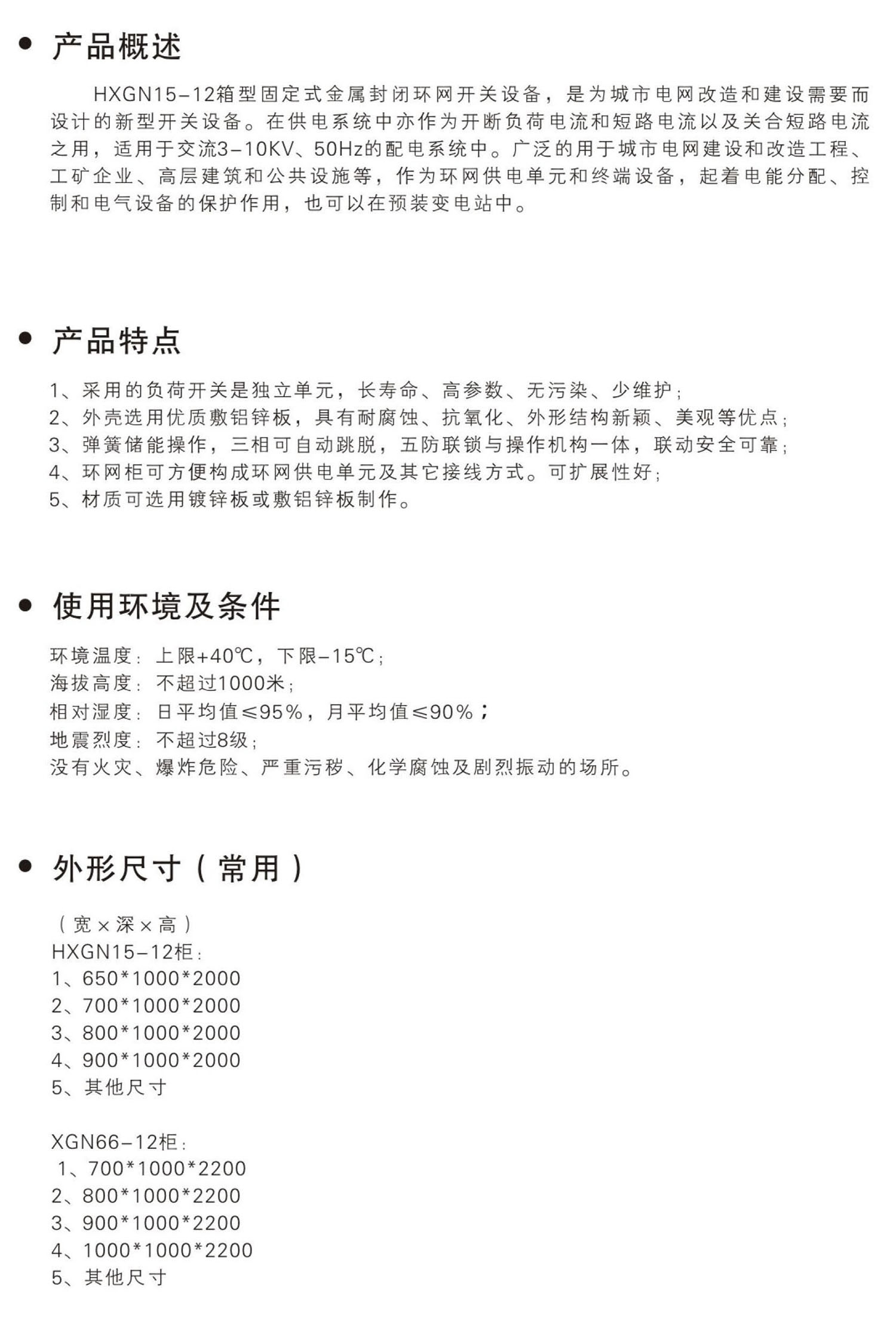 HXGN15-12、XGN66-12箱型固定式开关柜柜体/环网柜